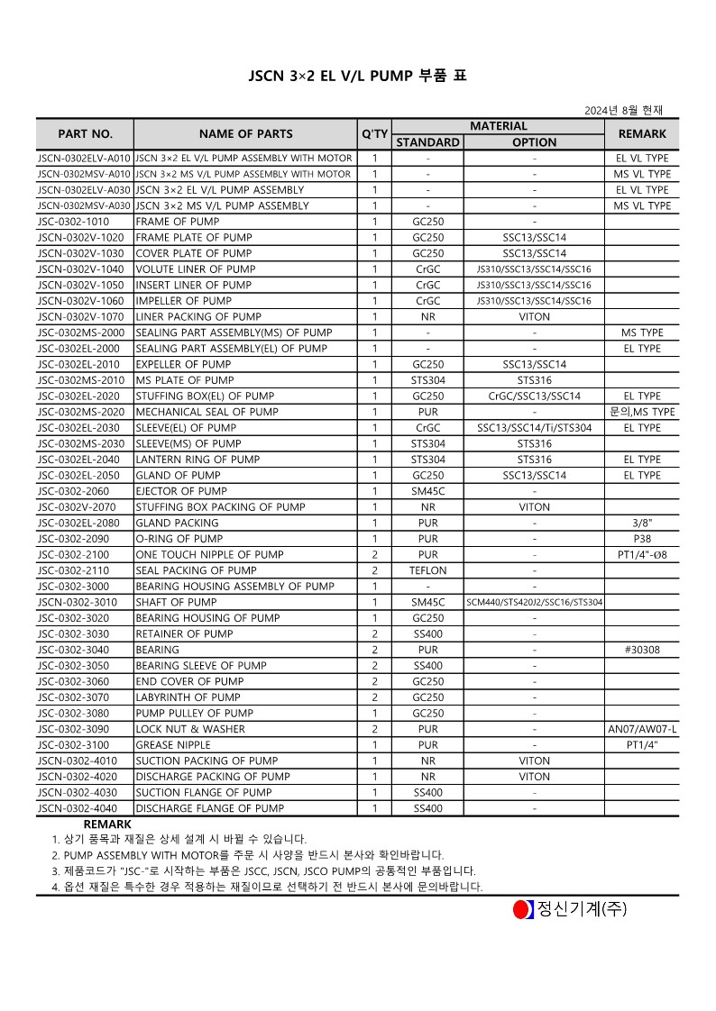 JSCN 3×2 V/L 부품표